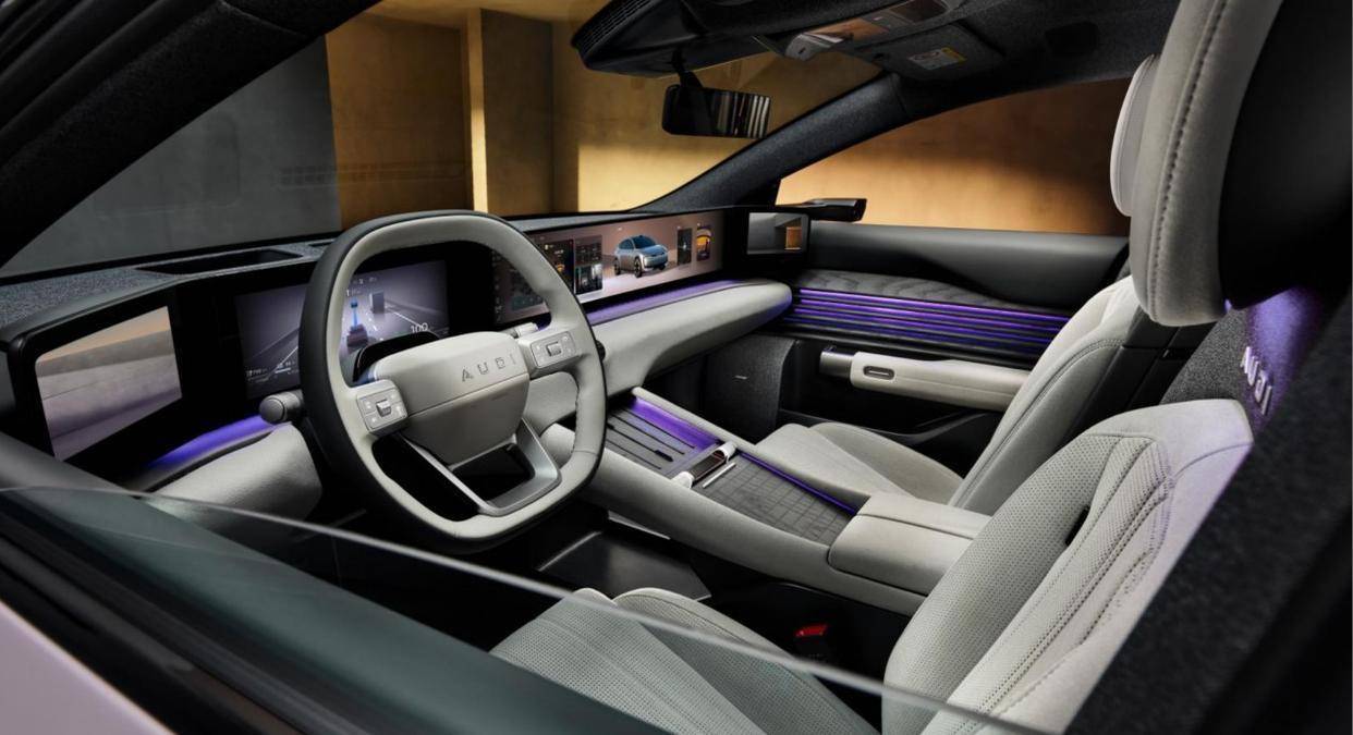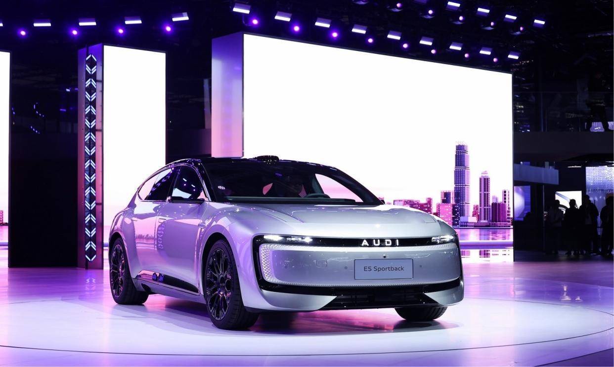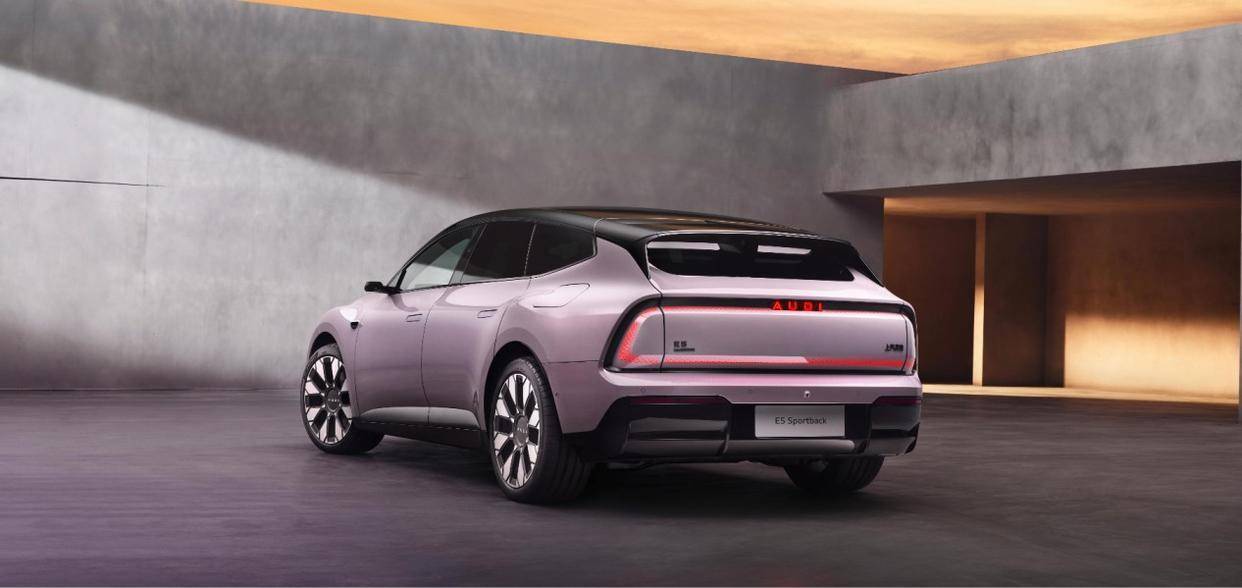 你可以看到,奥迪E5 Sportback对空气动力学和整车造型设计的理解,其实不只是12处优化这么简单,其中也有着纯正的奥迪经典设计在新时代的变化和创新,做到了重新诠释奥迪经典设计元素的同时,巧妙融入中国市场倾向那种浑然天成的审美偏好。不论是型面还是细节,几乎不存在冗余的设计,这是奥迪设计团队和工程团队对于纯电时代奥迪新车型共同缔造出的艺术品。如奥迪·上汽合作项目CEO宋斐明所言:“我们不是在制造交通工具,而是在气流中雕刻未来出行的诗篇。”【豪华,是让技术的跃升闪出新的光辉】奥迪不仅在设计领域融合了奥迪的经典和中式的美感,在如今的新能源时代,奥迪E5 Sportback在技术端也汇聚了中德最顶级的前沿技术,带来了出类拔萃的科技配置和令人惊艳的产品表现。作为一台纯正的奥迪,奥迪E5 Sportback在最根本的性能与驾控方面毫不妥协。总输出功率高达579千瓦,搭配双电机quattro智能四驱系统,零百加速仅3.4秒。要知道在去年公布AUDI E概念车的时候,零百加速还是3.6秒。量产车比概念车性能更强,属实罕见。而且,奥迪标志性的渐进式转向系统搭配了DCC动态底盘控制系统和空气悬架的配置,你可以看到奥迪E5 Sportback承袭的正是奥迪的运动基因,这是德国人对于机械浪漫在新能源时代的魅力绽放。